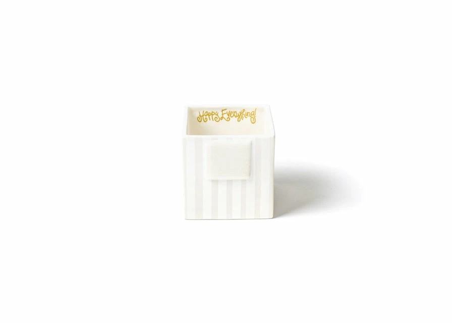 From statement decor pieces to versatile storage pieces,Β the White Stripe Small Mini Nesting Cube is a must-have for any stylish home. Its versatile stripe pattern and unique shape, make it an elegant, multifunctional piece to add color and style to your table or home decor. Attach any of the Mini Attachments to the front with velcro to add a little Happy to everything!